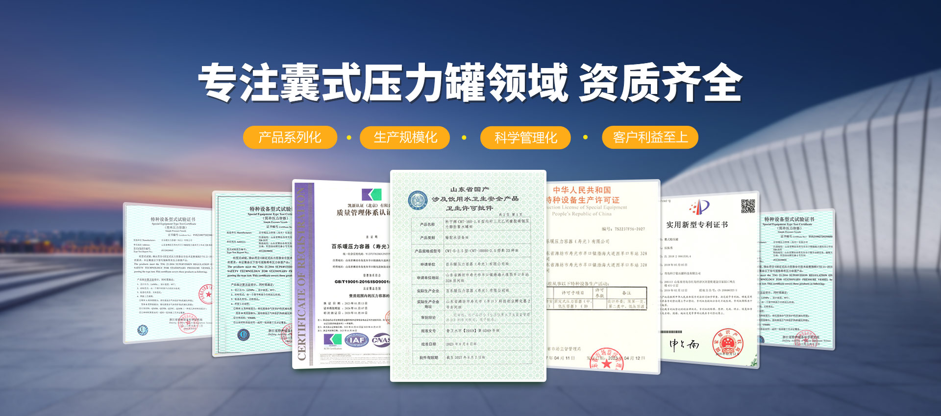 壽光市科寧壓力容器(壽光)有限公司是專業從事壓力膨脹罐、空氣/水儲罐、空氣能儲罐、水錘罐、熱能/冷能儲罐、無負壓供水設備穩流罐、耦合罐的研發、制造、加工、銷售、維修;經營國家允許范圍內的貨物與技術的進出口業務。材質有碳鋼、不銹鋼、雙相鋼等。產品主要用于:恒壓變頻供水設備、無負壓供水設備、供暖系統、太陽能、地暖、消防、空氣能、空調、大型供水系統(防水錘)。起到節能、穩壓、防水錘、蓄能、環保等作用,延長水泵和管道系統的使用壽命,確保供水系統穩定運行...
